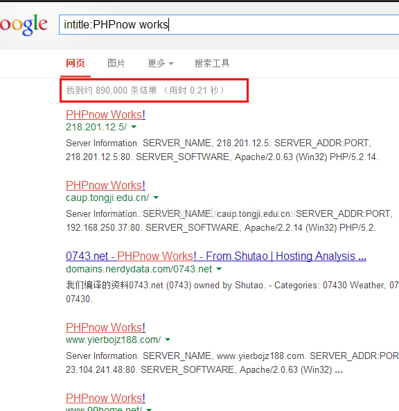 查看默认主页的标题为“PHPnow works”,找个搜索引擎查找