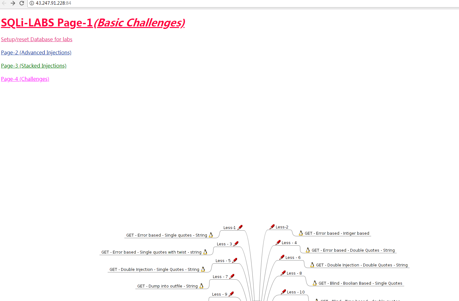 如下图,从less1-less22可以根据提供平台 循序渐进地练习sql注入