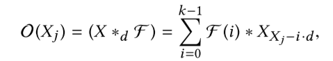 除此之外,考虑到网络的深层结构以及长期依赖关系,常用于卷积结构中的技术像空洞卷积(dilated convolutions)和残差连接(residual connections)。其中,对于一个一维输入序列 和一个滤波器 来说,对序列中的 个元素的空洞卷积操作即是: