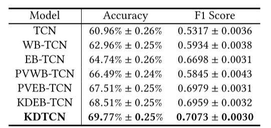进一步地,不同输入形式的TCN模型被用于进行比较,可以看到提出的KDTCN模型实现了最高的预测准确性。