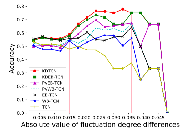 这篇文章也是首次将时间卷积网络模型用于股票趋势预测的文章。之所以通过事件驱动的时间卷积网络模型,是因为它在不同范围的任务和数据集上优于标准的RNNs以及LSTMs,同时显示出更长的有效时间。而从直觉上看,许多事件都是股票市场突变的原因,而事件和变化之间的相关分析提供了相应的解释。实验表明,KDTCN可以更快地对突变做出反应,并且在股票数据集上胜过对比方法,更进一步地,KDTCN便于解释预测结果,特别是在突然变化的情况下。