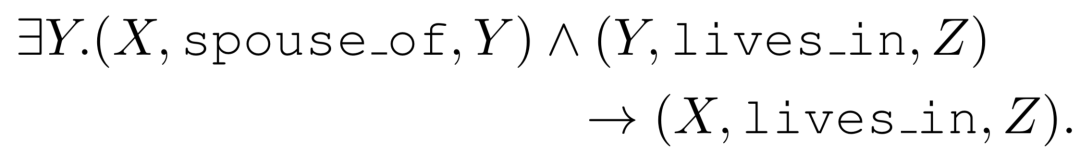 那么如何才能进行归纳式的关系推理。换一个角度看,关系推理可以是一个逻辑归纳的问题,也就是如何从已有的知识图谱中归纳出关系并且在预测的时候利用关系。下图2中是一个规则的示例。当模型可以捕获到规则的信息,那么就可以对没有见过的实体进行关系预测了。