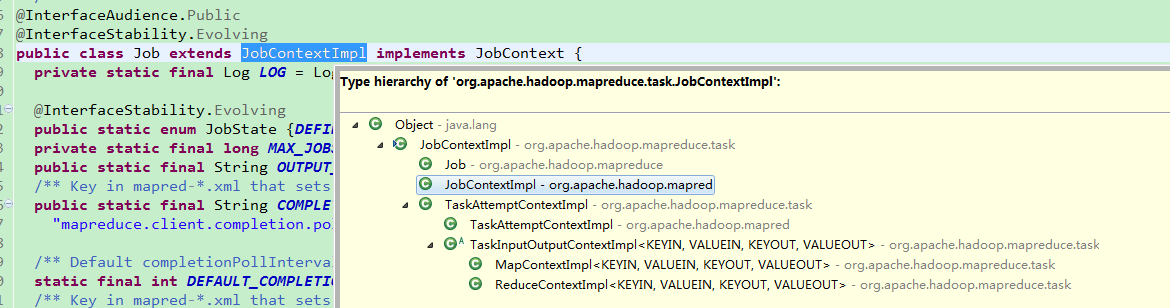 第一步,先分析Job,可以看见源码中Job实现了public class Job extends JobContextImpl implements JobContext