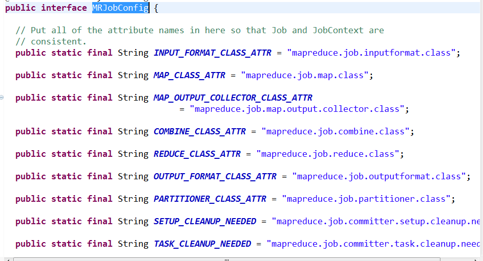 然后JobContext实现了 MRJobConfig,可以看见其中有很多配置
