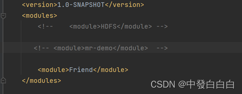 2.2 在父级pom.xml中,对于其余的module进行注释,方便下一步打包