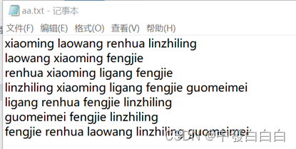 - 每行的第一列名字是用户的名字,后面的是其对应的好友
