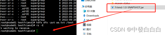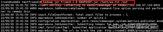3.7输入hadoop jar Friend-1.0-SNAPSHOT.jar /test/aa.txt /out命令运行jar包