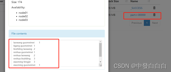 3.8在生成的bb.txt文件中查看part-r-00000文件,即可查看最终结果,(如下图所示)