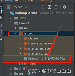 注意:在pom.xml中需要指出Friendscount类的具体路径,在类上按ctrl键可以跳转即可。