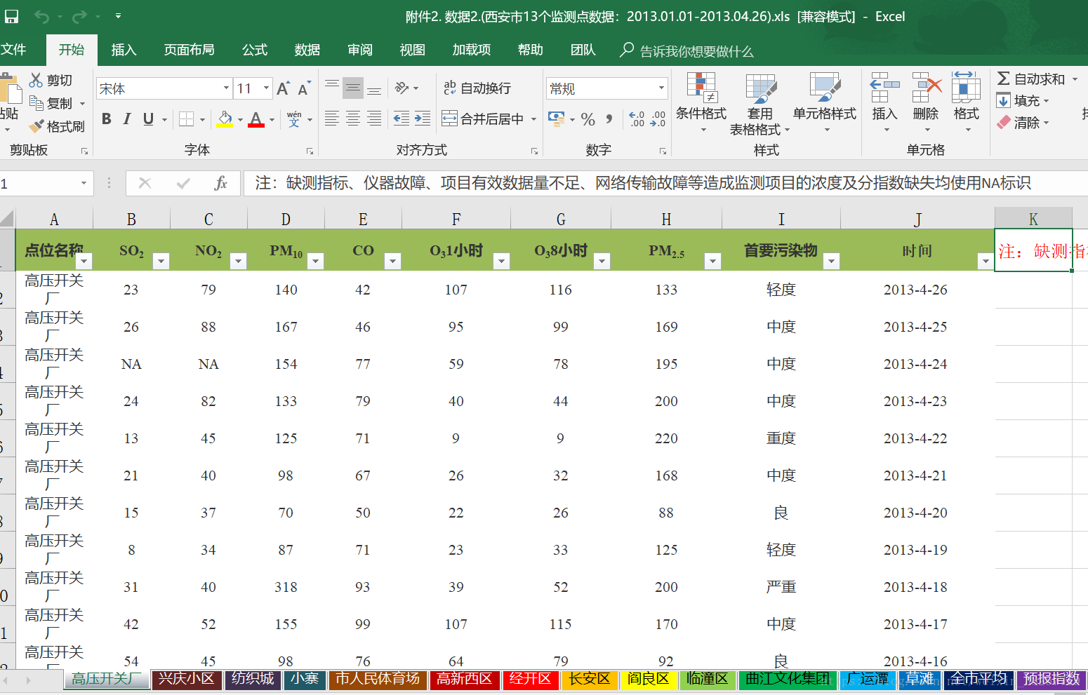 我要用的是SO2 、NO2、PM10、CO、O3、231、PM2.5 ,看起来数据都很正常。