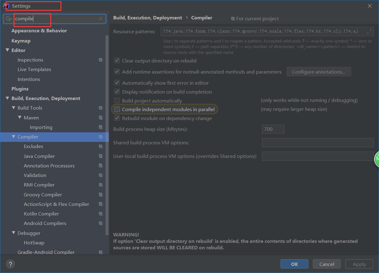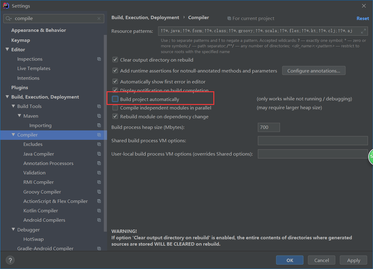 热部署失败,是因为idea不支持编译。进行如下更改!