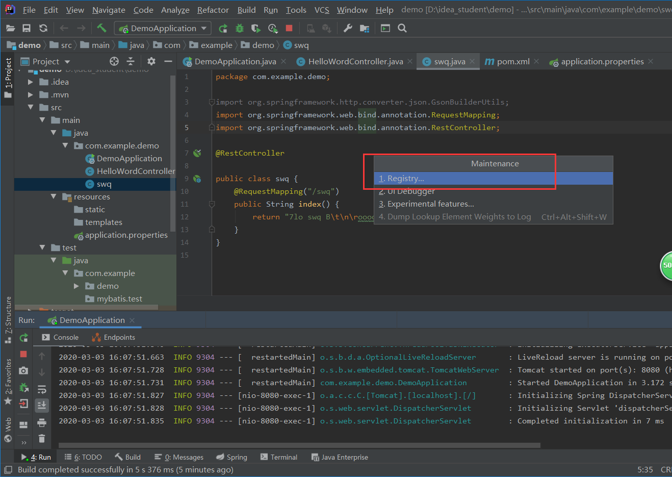 4,记得重启idea,重新运行项目就行!点红色四方块,再点绿色三角形。