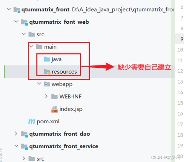 需要注意的是:子模块web中main文件下缺少目录: