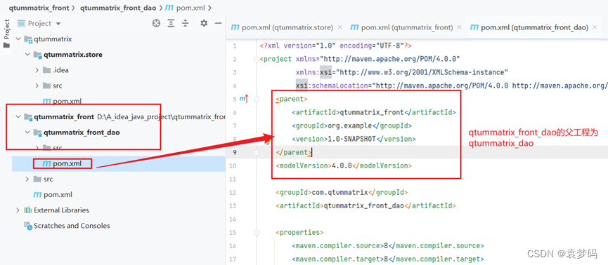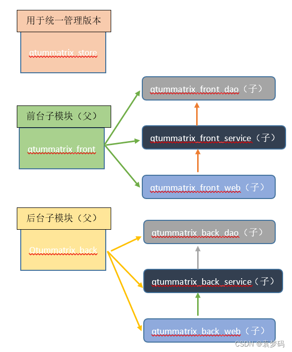 以上就是畅快皮卡丘最近收集整理的关于IntelliJ IDEA :使用Maven创建聚合工程1、创建qtummatrix_store(用于统一管理依赖版本)2、创建于上个模块处于 并列关系的 前端模块 3、依照第二的整体步骤去创建后端的各个父子模块,步骤一样,注意命名,以及依赖关系:的全部内容,更多相关IntelliJ内容请搜索靠谱客的其他文章。