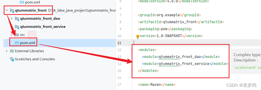 效果图:web子模块的pom文件截图