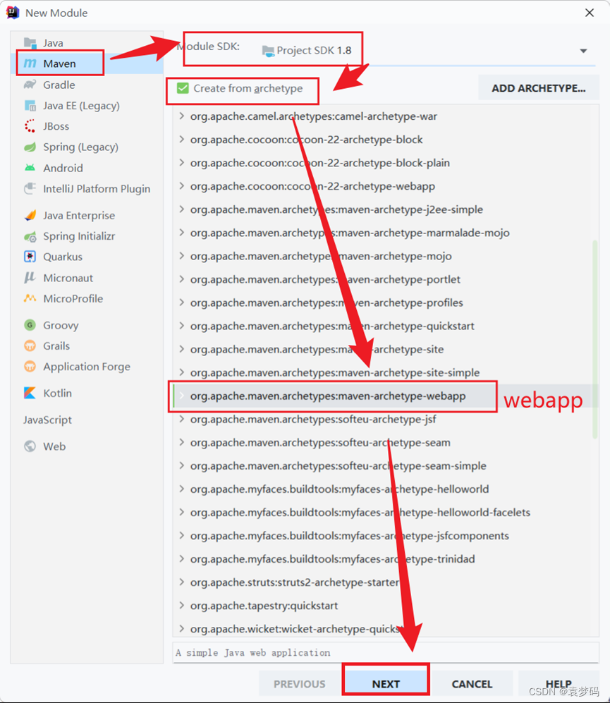 2.3:创建前端子模块的web层(注意此时选择的是webapp)