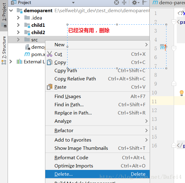 3、这样一个project就创建好了,删除没有用的src