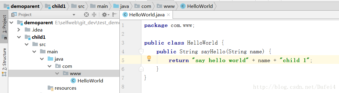 a、在child1中添加HelloWorld类