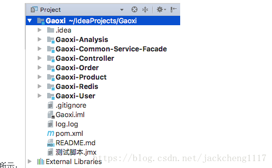 5.其他子模块和 Gaoxi-user子模块类似创建即可,最后结果如下: