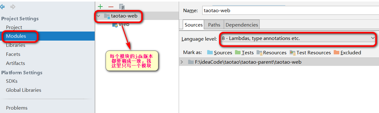 要注意各模块使用的jdk版本要一致