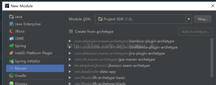 如果你创建的是基础模块(例如service模块,model模块,common模块),则不需要勾选“create from archtype”,如果创建的是web模块(也称为app模块,用来和请求对接的模块),需要勾选“create from archtype”。