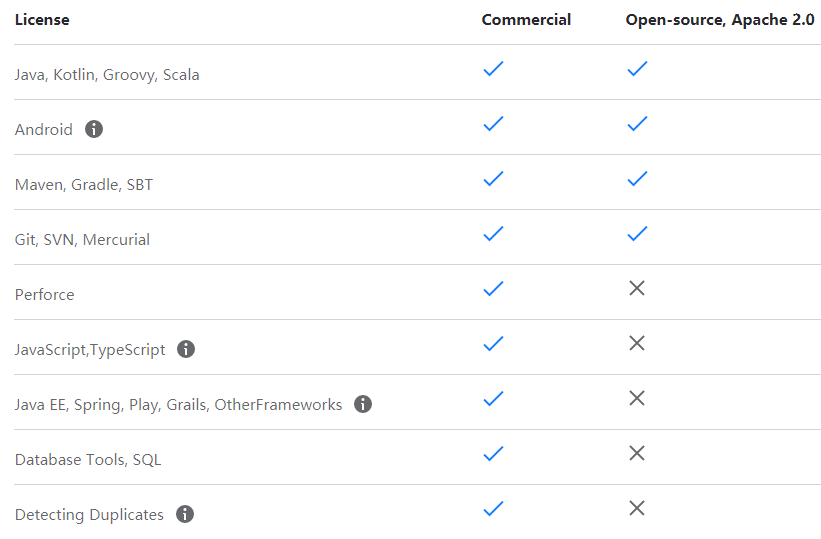 - 社区版(Community):功能单一,倾向于Java和Android开发