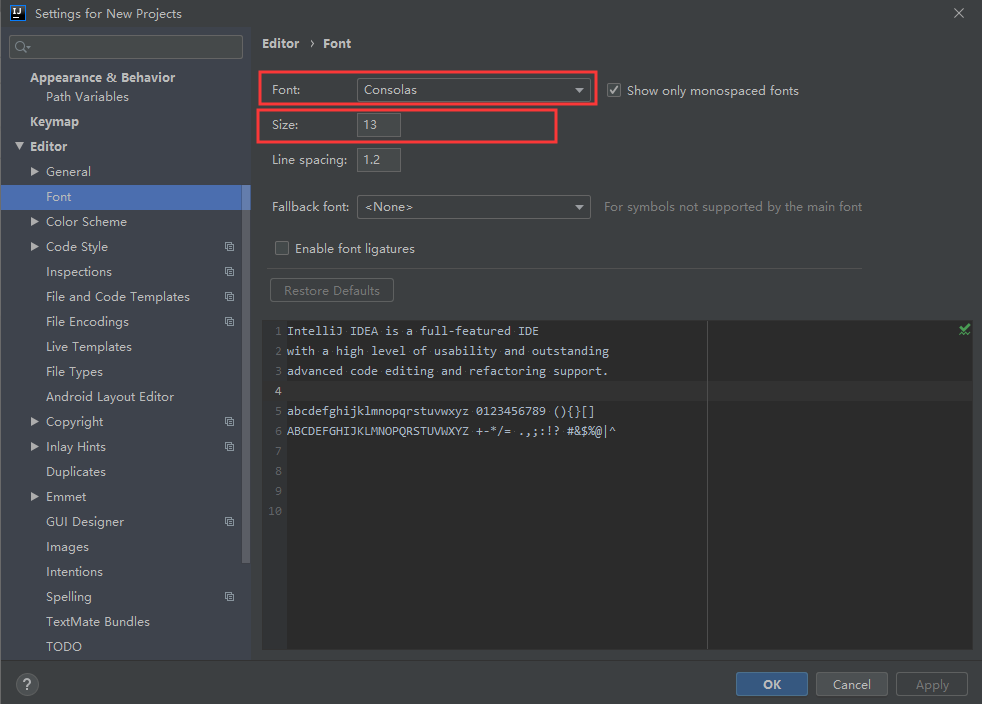 1)配置IDEA的字体和字号