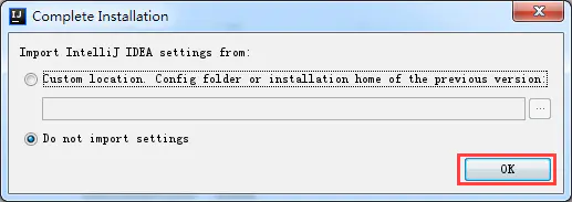 6)运行 IntelliJ IDEA,如果之前安装使用过,可选择第一个选项,导入之前的配置文件;如果之前没有安装使用过,可选择第二个选项。点击 “OK”;