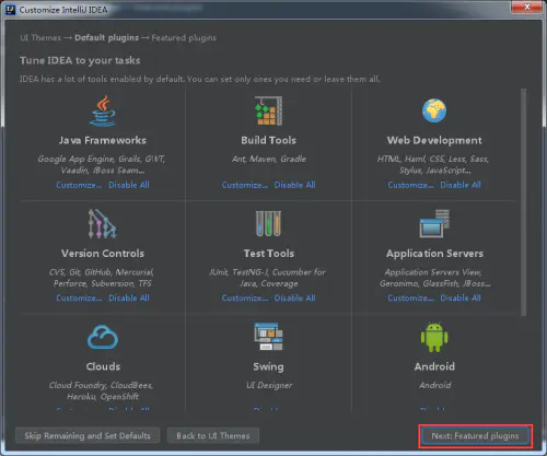 10)默认插件,点击 “Next Featured plugins” 下一步;