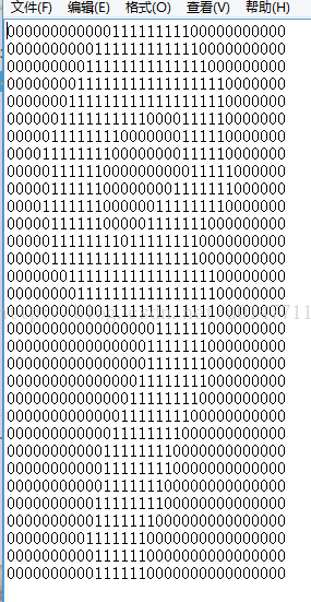 那么有了这么一张bmp图片对于我们现在来说没有任何用处啊,因为我们是要编程的,总不能告诉计算机说:这就是9的样子,你记住他就行了,其他和它像的都叫9。计算机可没有那么聪明,因为它只认识0和1,所以人类大脑是比计算机聪明的多滴!接下来的工作就是把这张图片变成计算机可以认识的文件了,什么样子呢?看下面
