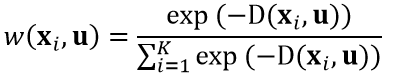 另一个需要讨论的问题是,在前面的计算中,我们认为这K个与测试样本距离最相似的训练样本对测试样本具有相同的影响,也就是我们并没有考虑训练样本与测试样本之间距离大小的影响。对于这个问题,我们可以使用距离权值来解决,即让距离更小的样本具有更大的权值。K个最邻近样本中第i个样本xi与测试样本u的权值可以定义为:
