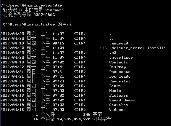 - dir 列出当前控制台所在的路径下的所有文件以及文件夹