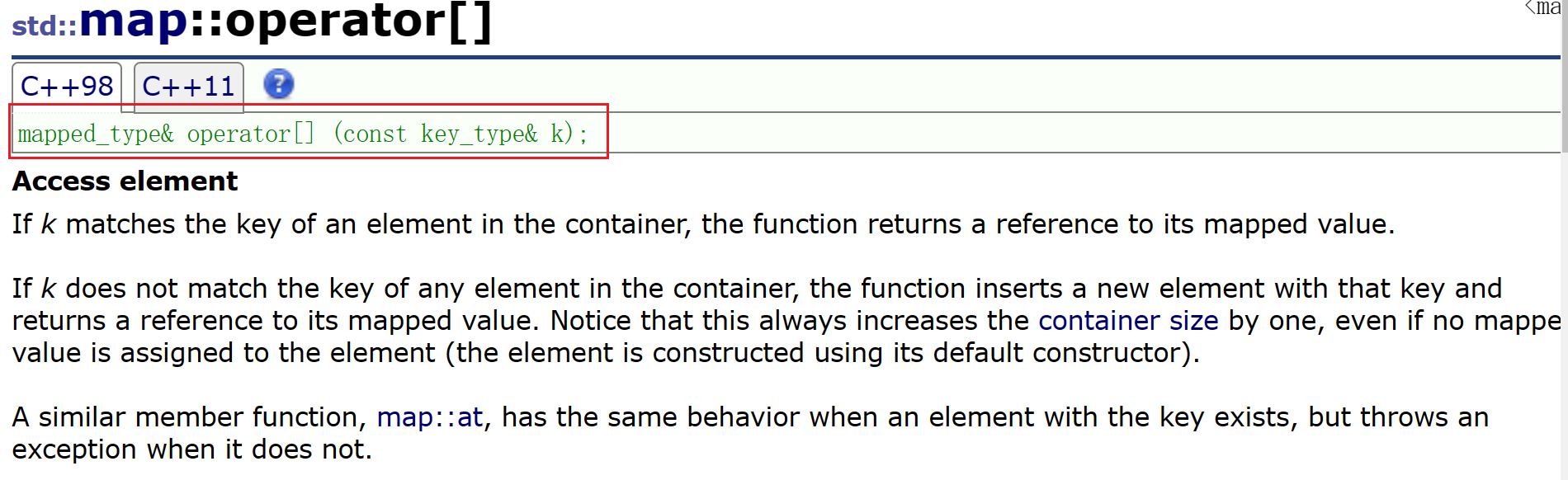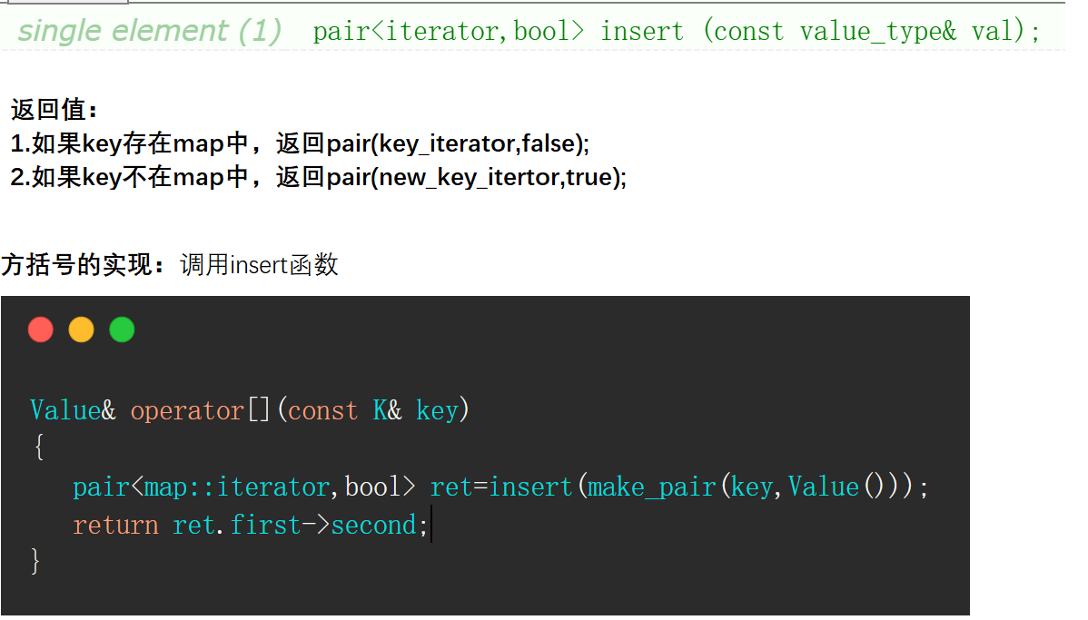 其实下标访问操作符的本质是调用了 insert 函数,下面的文档中的实现方式: