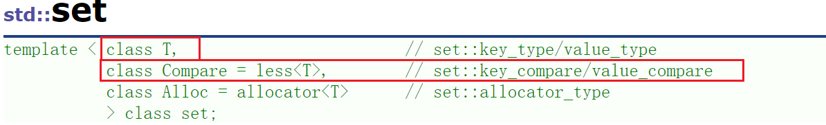 T:set 中存放元素的类型,实际在底层存储<value,value>的键值对。