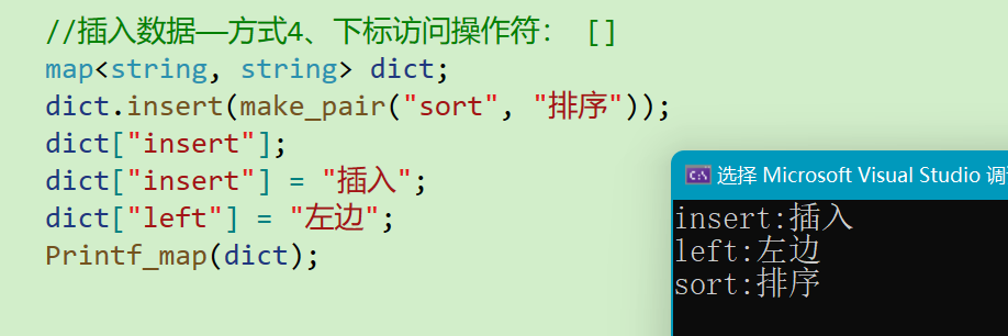 因为返回的是其value的引用,所以我们可以对其进行赋值,这也是一种插入方式,也是最简单的一种插入方式。