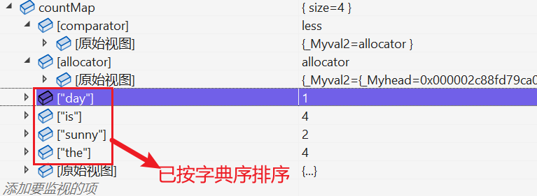 - 使用map根据其字典序进行排序,并统计单词的出现次数。