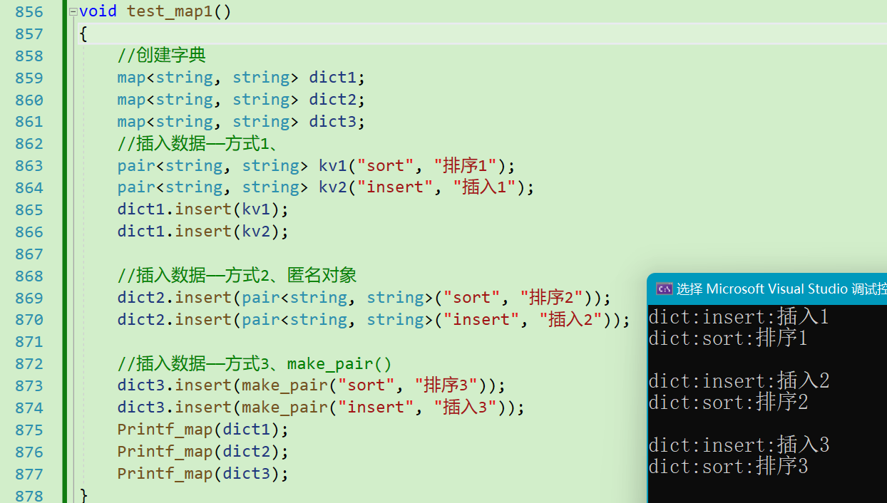 首先我们来看看insert的使用,首先要知道map的insert是插入pair类型的数据
