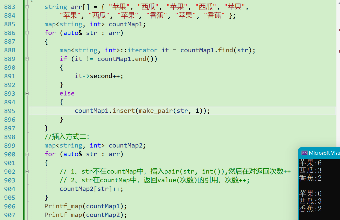 所以,在上面实现统计水果次数的map中,我们可以将其插入方式改为 [] 插入: