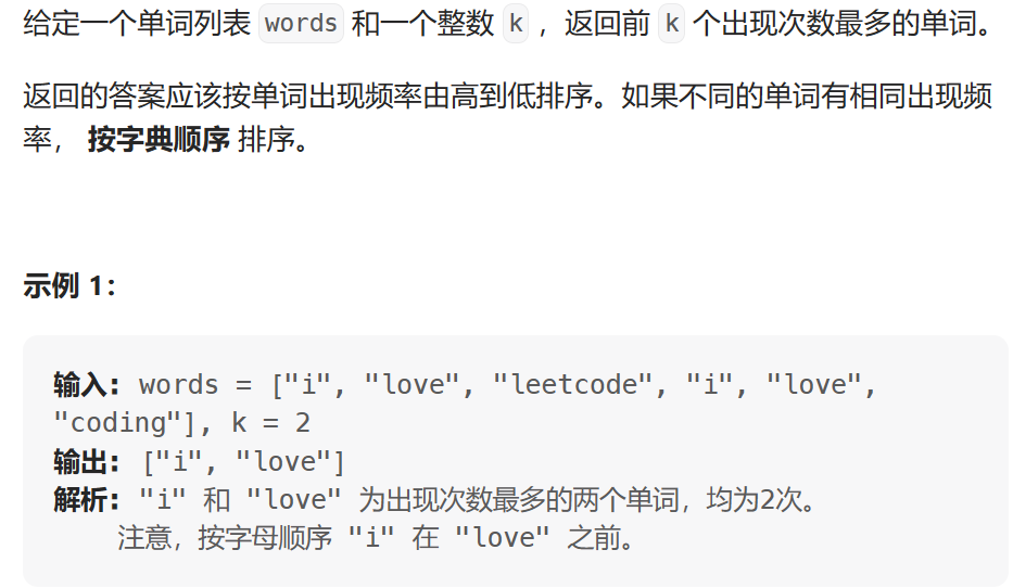 题目链接:692. 前K个高频单词