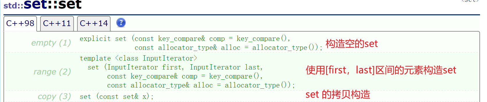 这里是 set 的文档介绍:set的介绍_C++reference 以下是几个重要点。