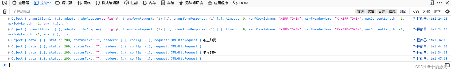 axios给我们提供了两大类拦截器 一种是请求方向的拦截(成功请求,失败请求) 另一种是响应方向的(成功响应,失败响应)