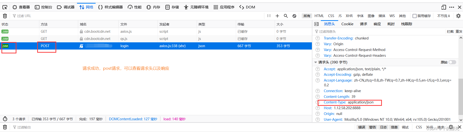 我们在axios的配置项中并没有设置请求方法,但是我们查看网络可以看到是get方法,因此,如果没有设置method,请求默认使用的是get方法