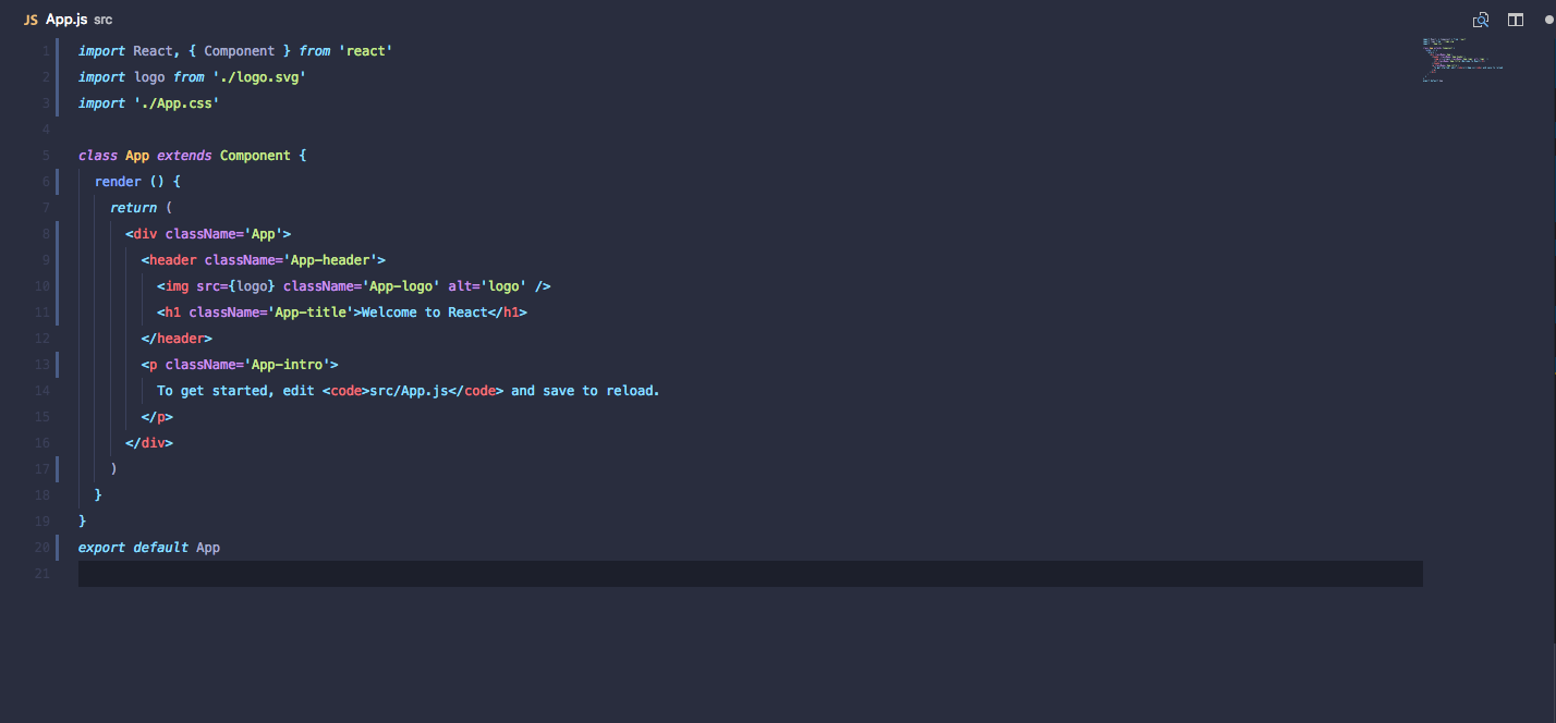 继续并从App.js和App.css删除所有代码,并将App.css替换为以下代码: