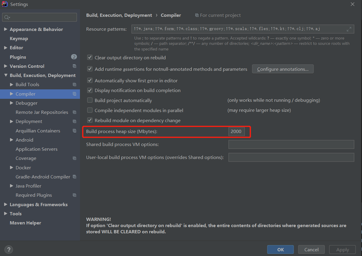 修改共享构建进程堆大小(Mbytes):,默认700,可修改成2000。