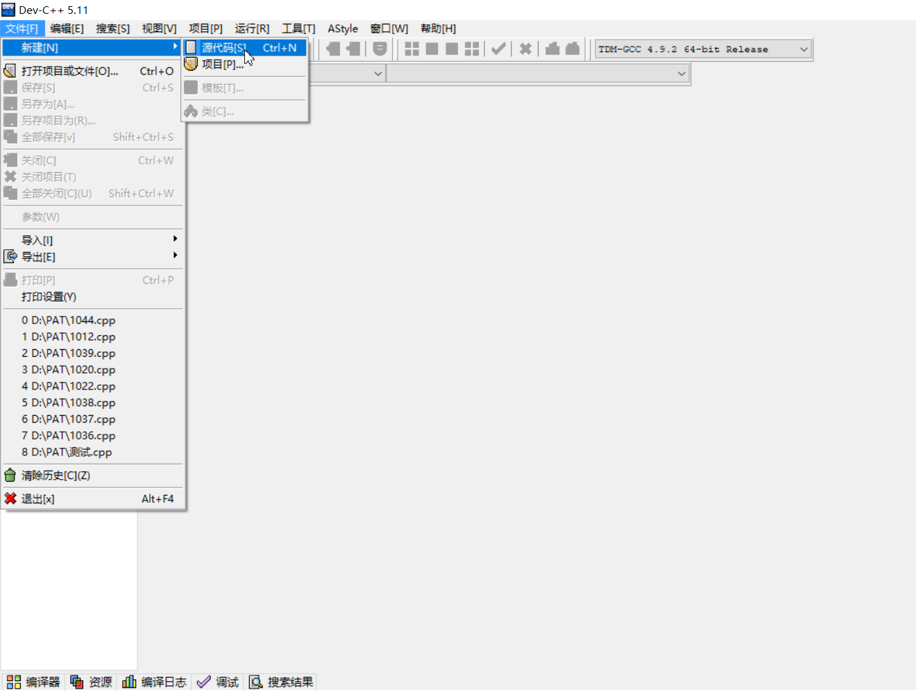 2.打开devc++软件,点击文件-新建-源代码,新建新的项目并可以开始写代码了