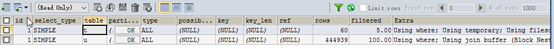查看下这两个关联表关联字段的数据类型是否一致,字符集是否一致,collate是否一致
