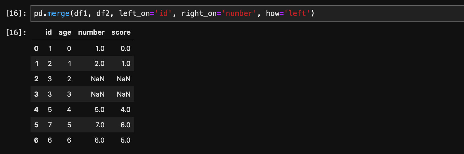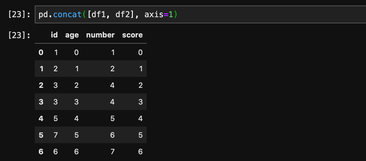 df2 = pd.DataFrame({'id': [1, 2, 4, 4, 5, 6, 7], 'score': range(7)})