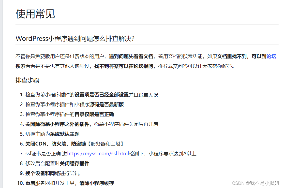 前些天我就把小程序的设置、wordpress的后台设置都弄好了,但是小程序里面的文章就是不显示图片,我在网上找了多次,都没有找到解决的办法。今天看到官网的教程中的提示,终于解决了。