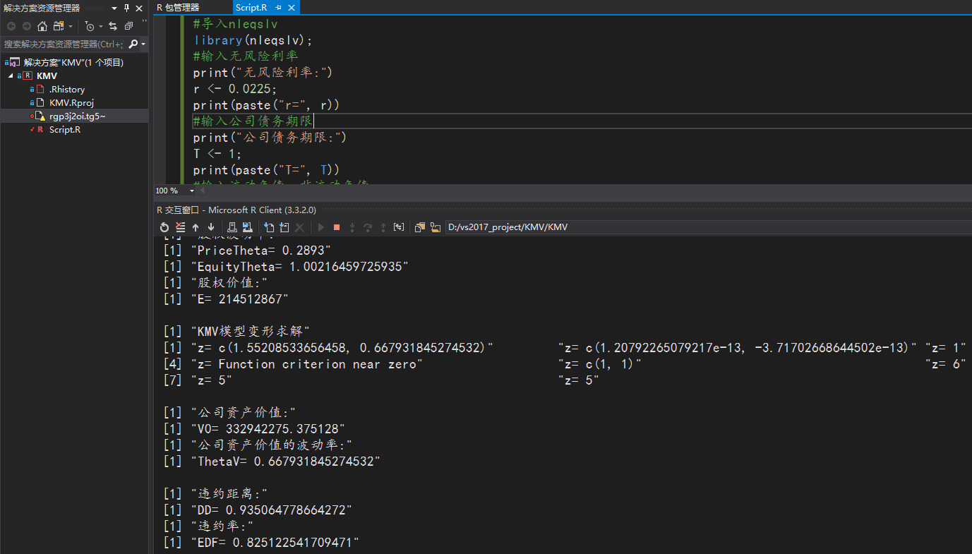 这是针对于博客vs2017安装和使用教程(详细)的KMV模型的R语言实现